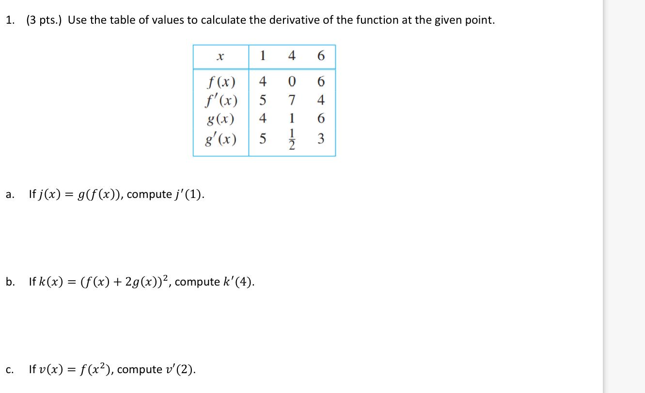 Solved 1 3 Pts Use The Table Of Values To Calculate The Chegg Com